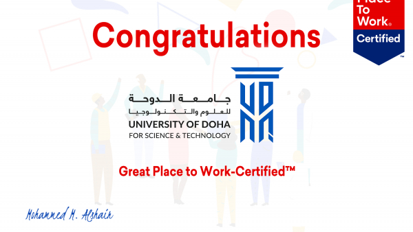 University of Doha for Science and Technology has been certified as a Great Place to Work after a thorough and independent analysis conducted by Great Place to Work® Middle East.
