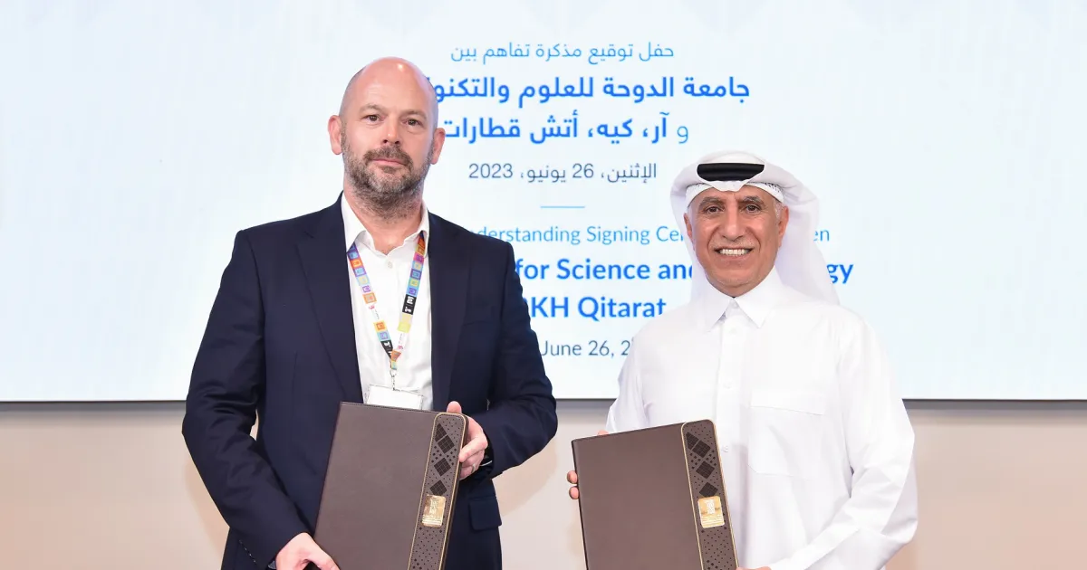 أعلنت جامعة الدوحة للعلوم والتكنولوجيا عن توقيعها لمذكّرة تفاهم مع آر كيه أتش قطارات، مقدّم الخدمات لشركة سكك الحديد القطرية "الريل" والشركة المسؤولة عن تشغيل وصيانة مترو الدوحة وشبكة لوسيل ترام، بهدف تعزيز التطوير المهنيّ لكوادرهما وتقديم فرص تدريب لطلاّب الجامعة وتفعيل الشراكة بين المؤسستين. وقع الاتفاقية الدكتور سالم بن ناصر النعيمي، رئيس جامعة الدوحة للعلوم والتكنولوجيا والسيد كيفين توماس، الرئيس التنفيذي والعضو المنتدب في آر كيه أتش قطارات، وذلك في حرم الجامعة بحضور المسؤولين من كلا الجانبين.