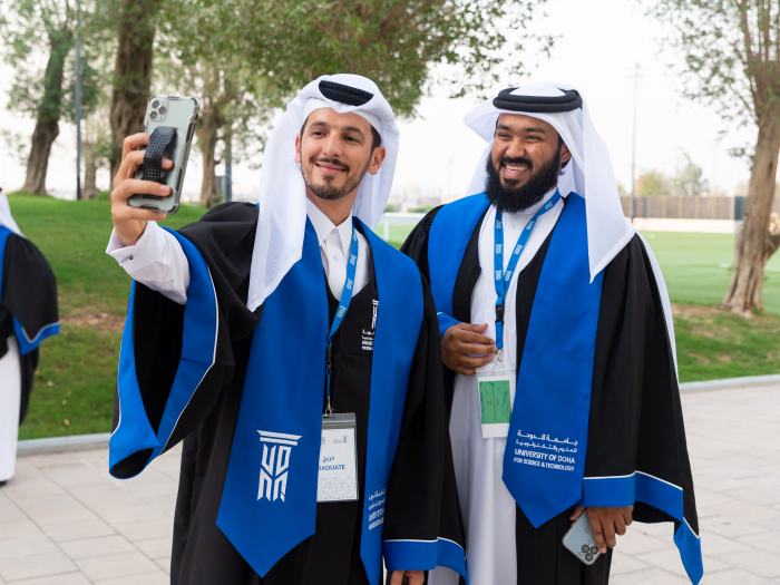 UDST academic regalia differs based on the graduate's program credential. Click here to view the different types of academic regalia available.