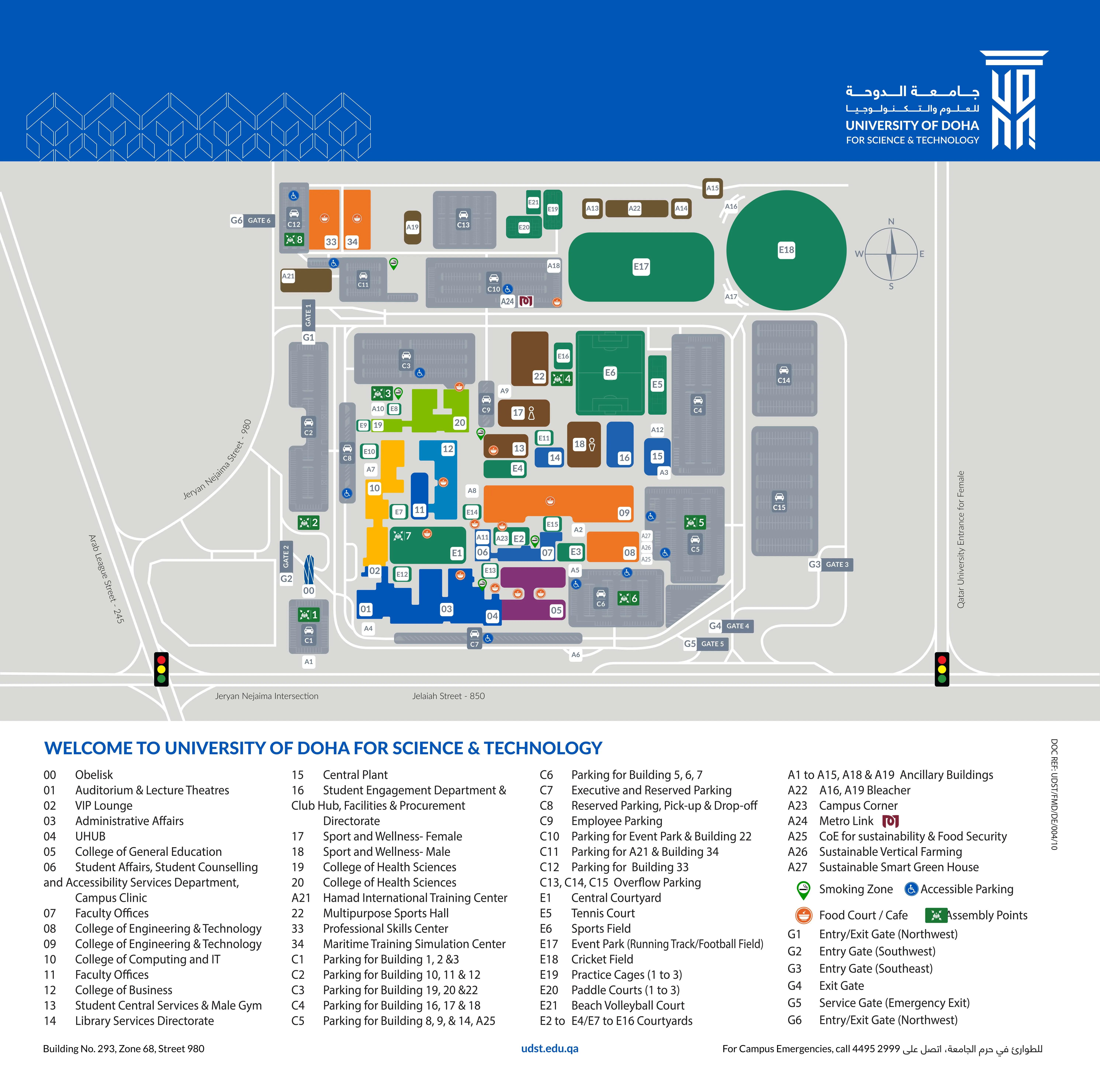 UDST Campus Map Quick Links Human Capital Orientation Orientation Program Acknowledgement Forms FAQ's Emergency Procedures Meet the Team HC Help Desk Guide of Conduct in Qatar UDST Food Corner Dress Code New Employee Guide Survey